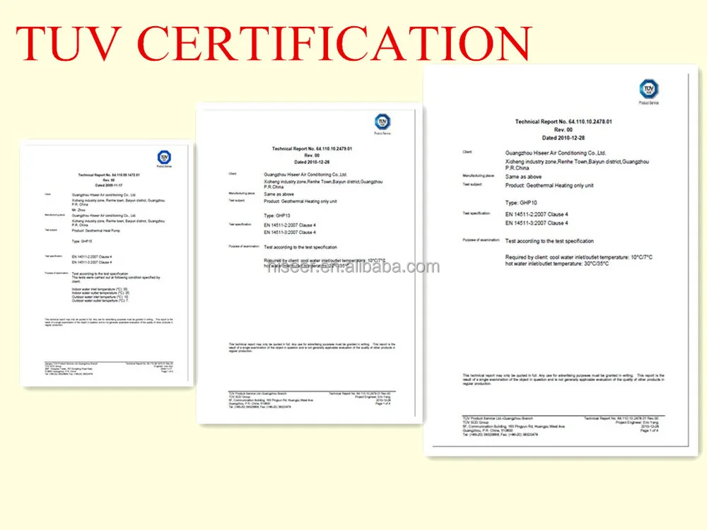 * Products design and produce heat pump by European standard EN14511, approved by TUV with its high efficiency. Factory audited by Bureau Veritas.